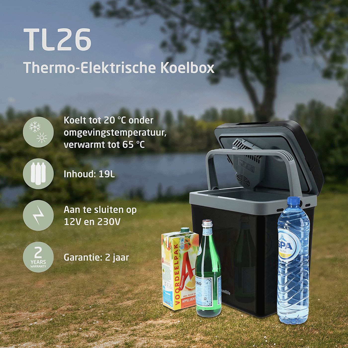 Want to enjoy a chilled drink at the campsite? Or do you want to keep a meal warm during a day trip? With the Travellife TL26 thermoelectric cool box, you can do both! The compact size and included car plug make the cool box ideal for at home, on the road or at your destination.