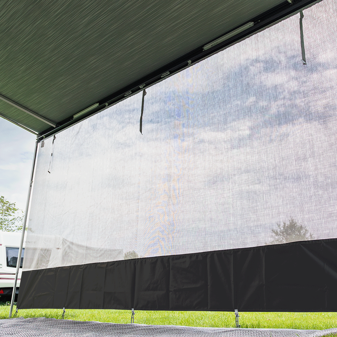 Il Reda Adventure Sunbreaker 330 è la soluzione ideale per filtrare la luce solare. Grazie al tessuto a rete aperta, puoi goderti una piacevole brezza e sfruttare al meglio l'ambiente circostante. L'installazione è facile e veloce. Con un pratico cordino da 5 mm nella parte superiore, puoi far scorrere senza sforzo il tessuto ombreggiante attraverso la guida della tua tenda da sole a cassonetto Thule o Fiamma. Puoi appendere il tessuto in verticale o tenderlo in diagonale, a seconda delle tue preferenze e della posizione del sole. Il set di tensionamento incluso con picchetti in plastica assicura che il telo rimanga saldamente in posizione.